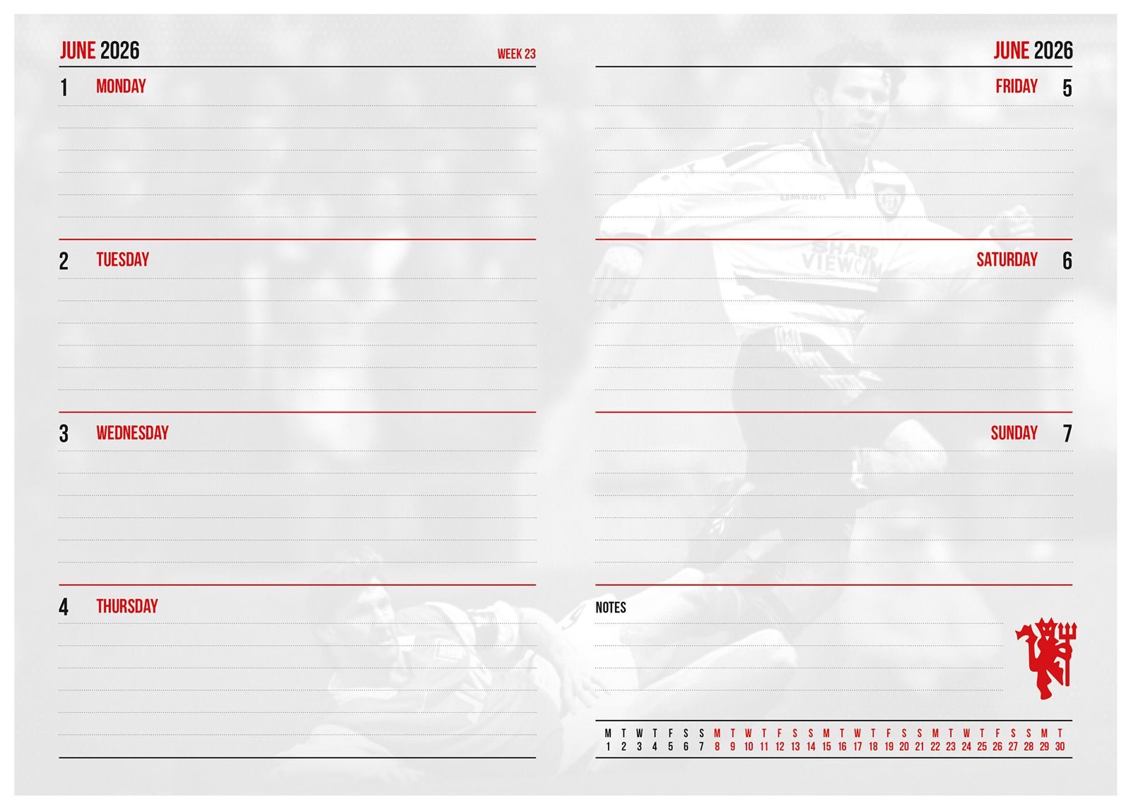 Manchester United FC - kalendarz książkowy A5 2026 14,8x21 cm