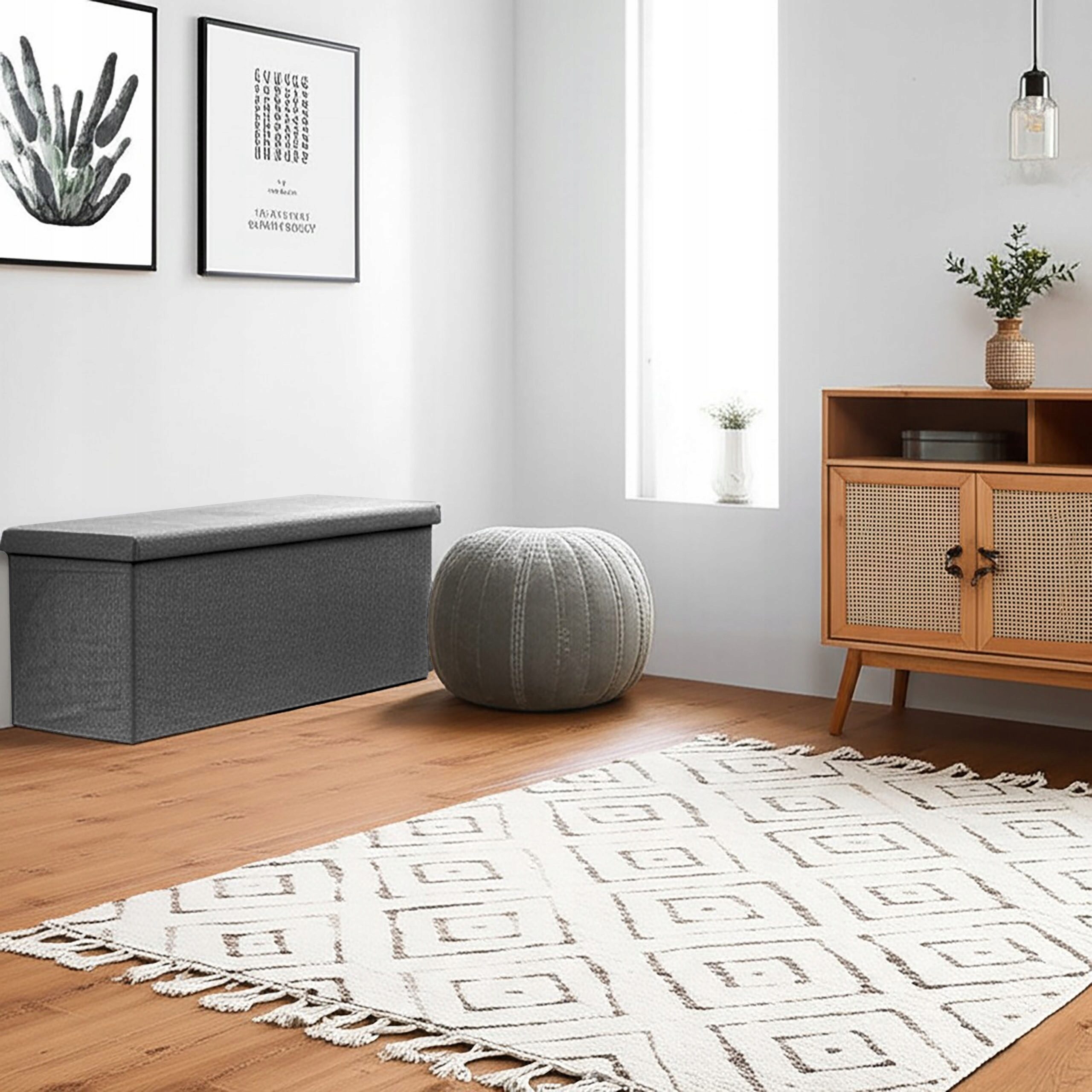 Pufa pełni funkcję siedziska, skrzyni do przechowywania i stylowego dodatku. Sprawdzi się w salonie, przedpokoju, sypialni czy pokoju dziecka.