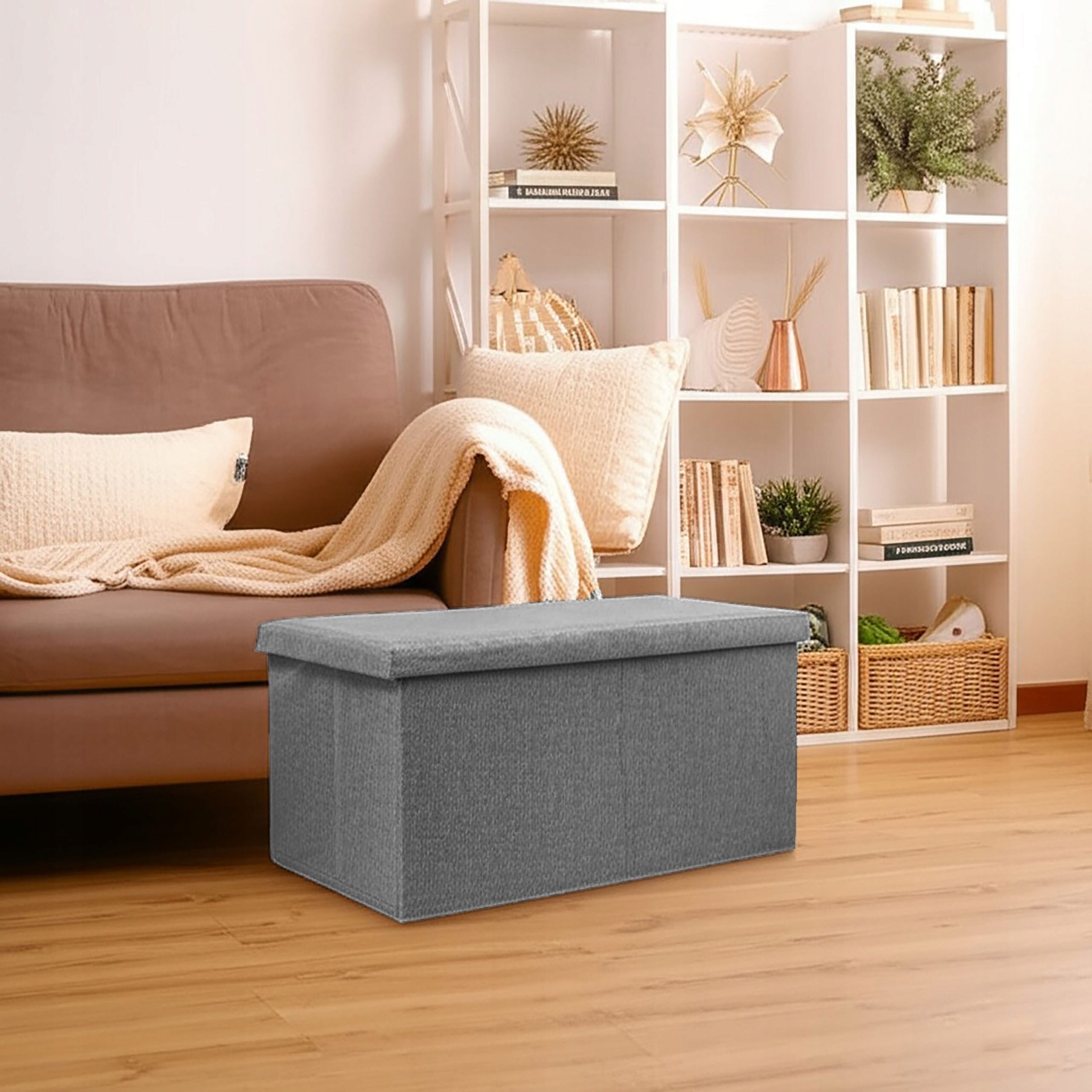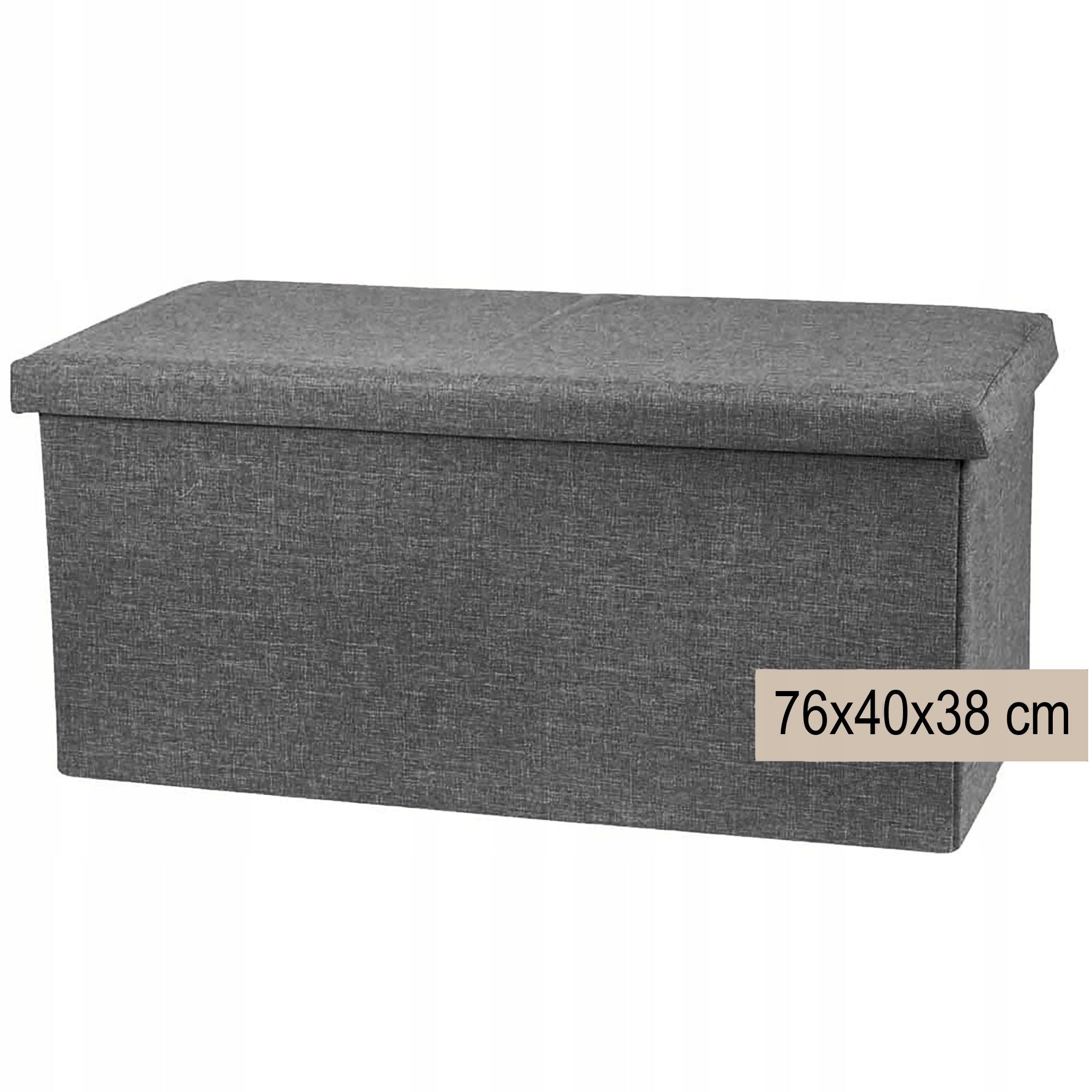Pufa ze schowkiem duża 76x40x38cm otwierana skrzynia materiałowa szara