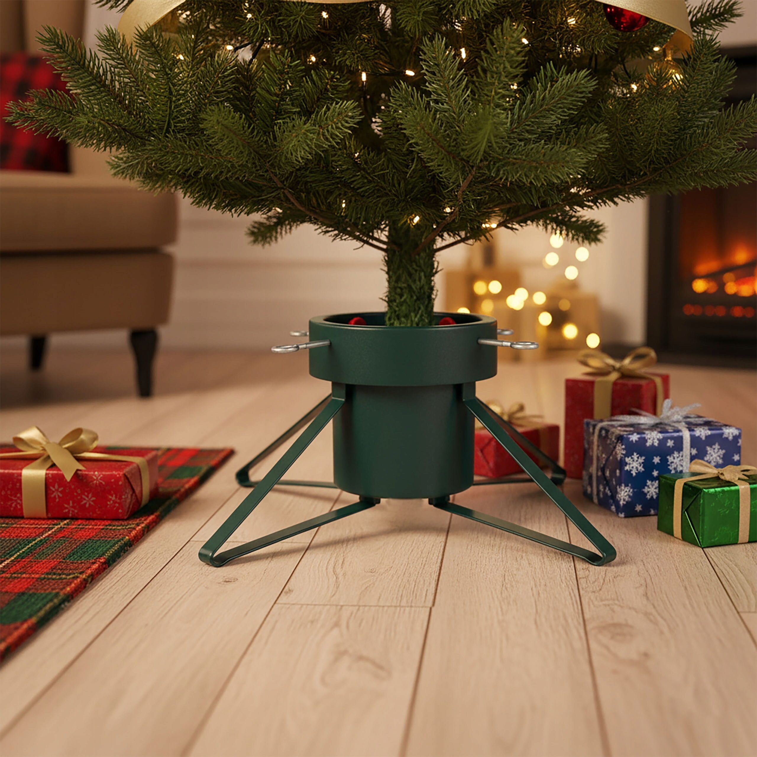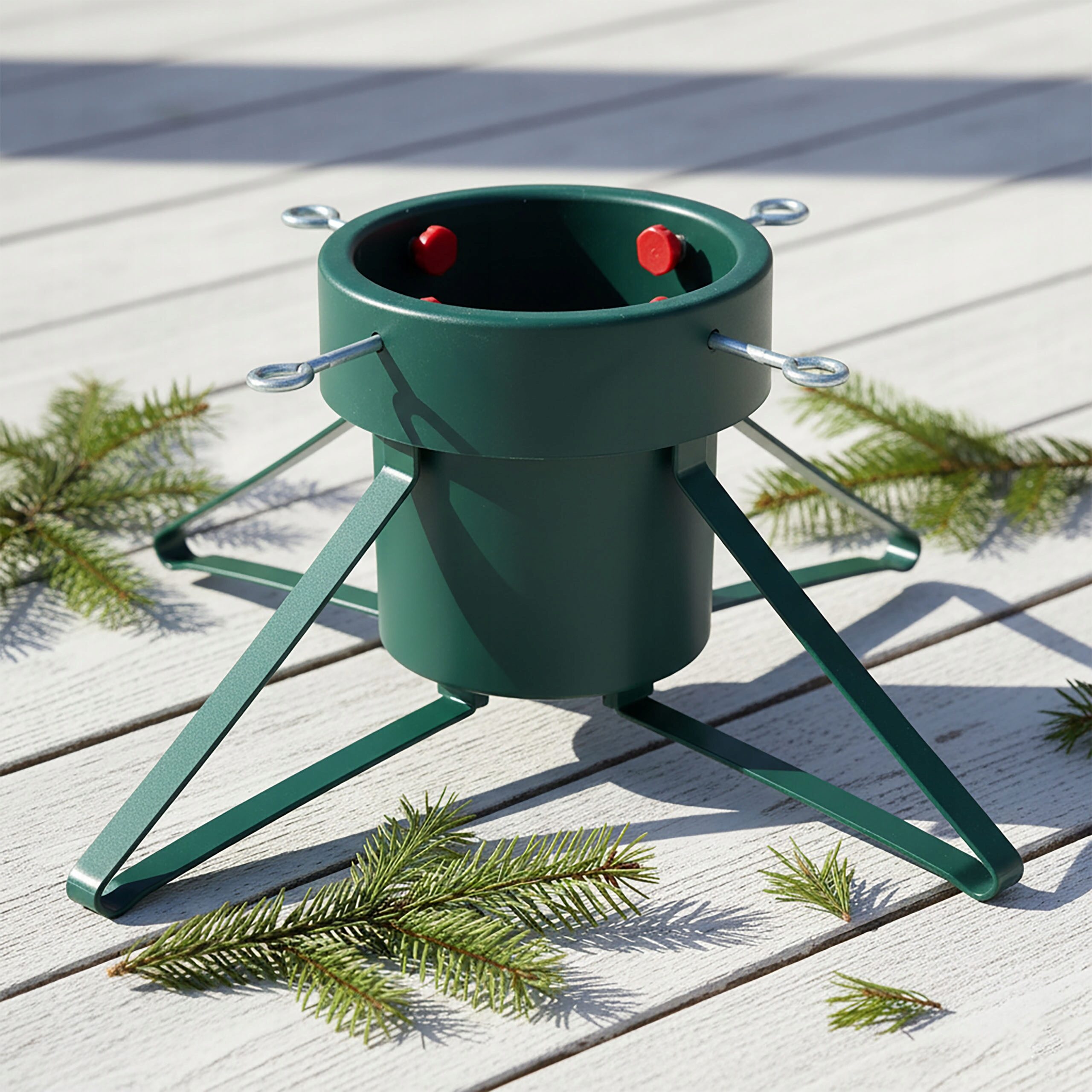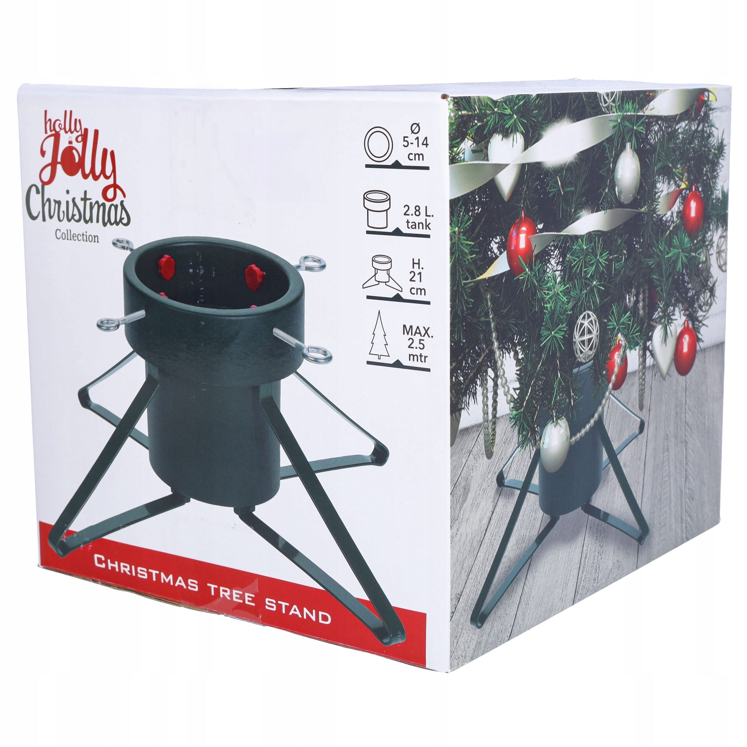 Stabilny i funkcjonalny stojak na choinkę z pojemnikiem na wodę to idealna podstawa dla naturalnego drzewka świątecznego. Dzięki solidnej konstrukcji z metalowymi nogami i dużemu zbiornikowi o pojemności 2,8 litra, Twoja choinka pozostanie świeża i stabilna przez całe święta.