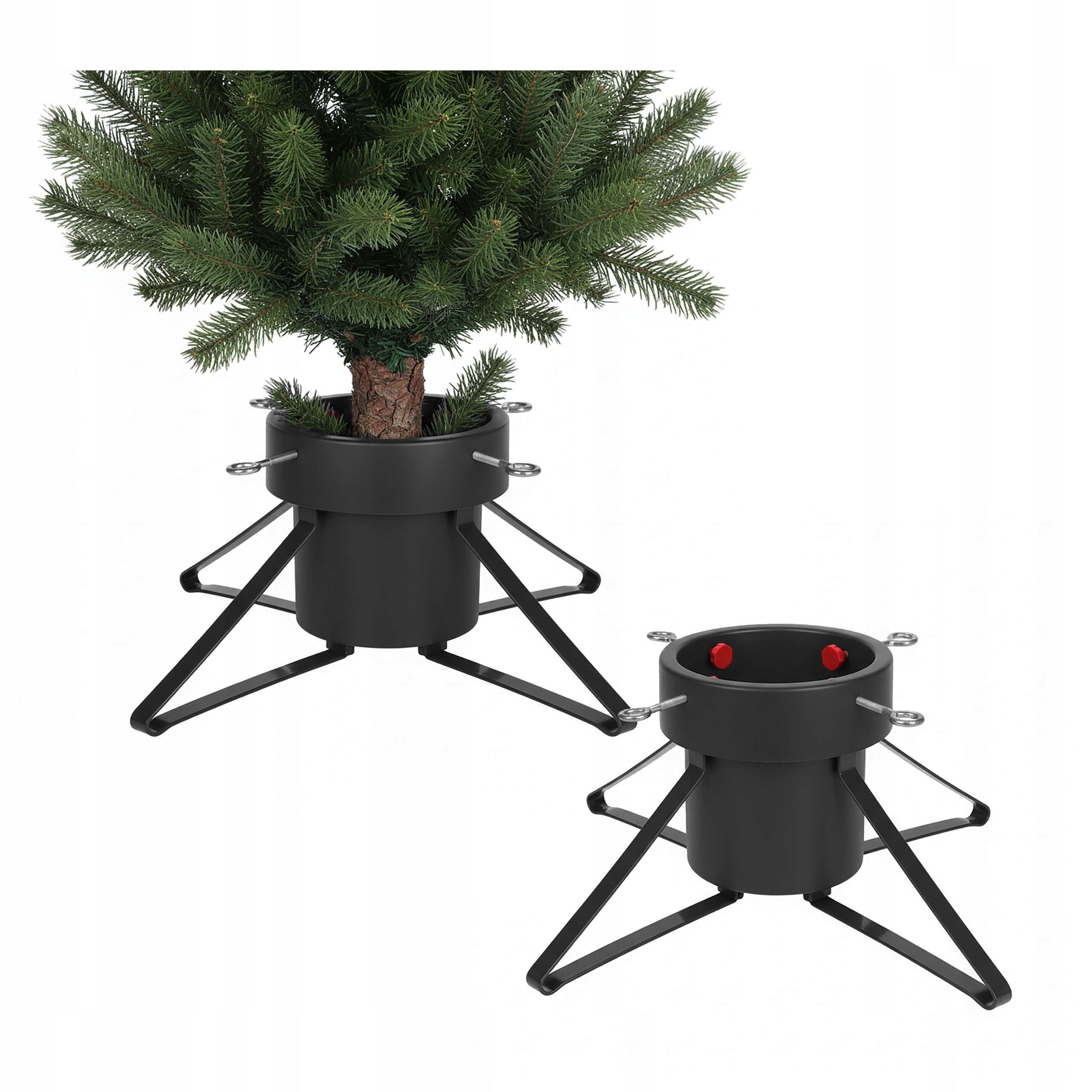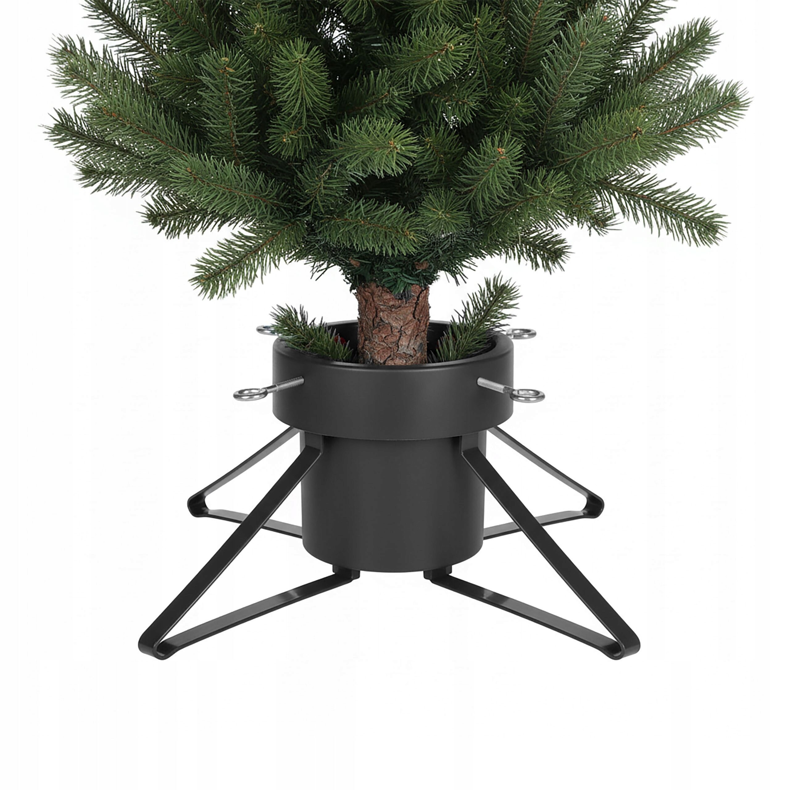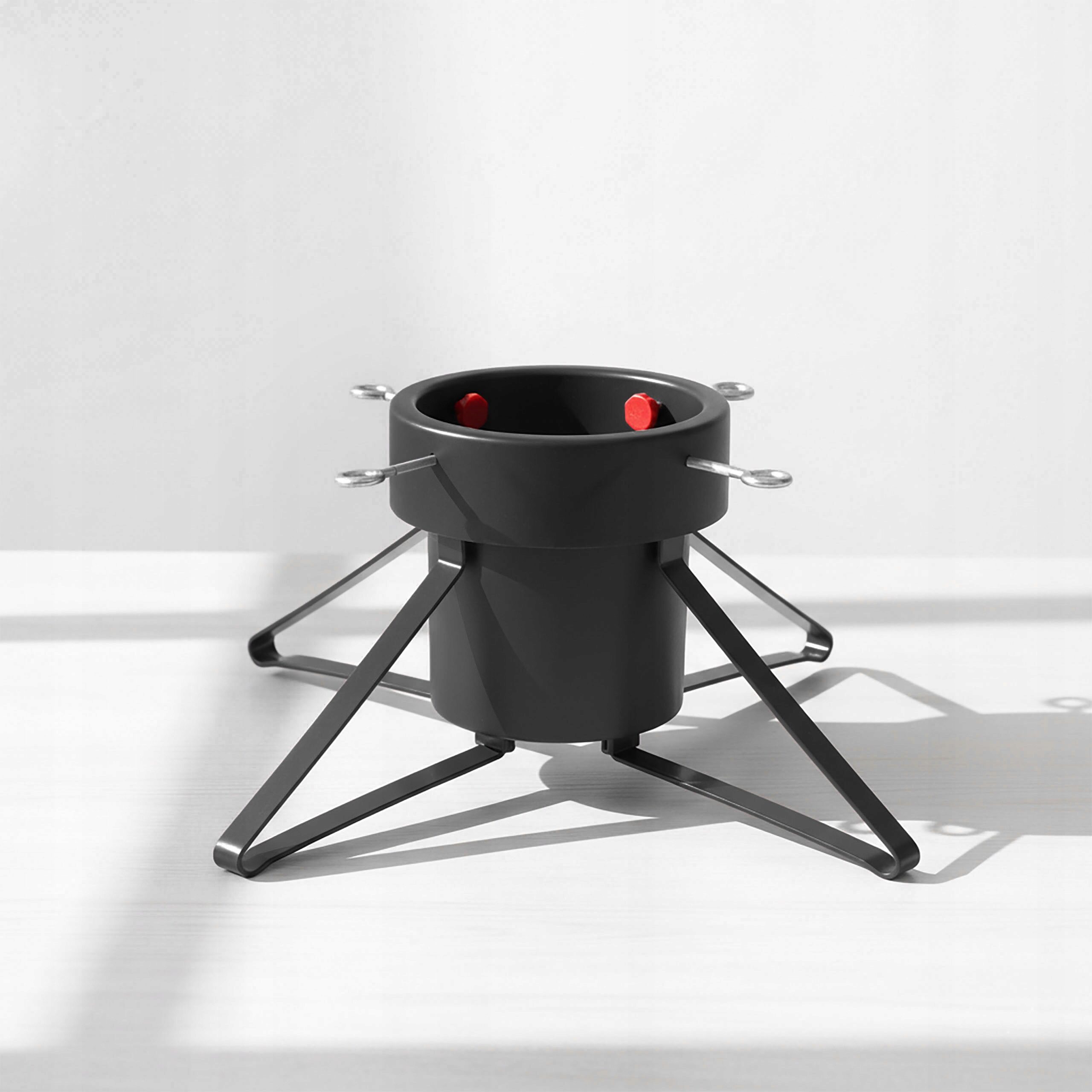 Wytrzymałe metalowe nogi zapewniają doskonałą stabilność nawet przy większym drzewku. Stojak wyposażony jest w cztery śruby regulacyjne, które umożliwiają łatwe i pewne zamocowanie pnia choinki.