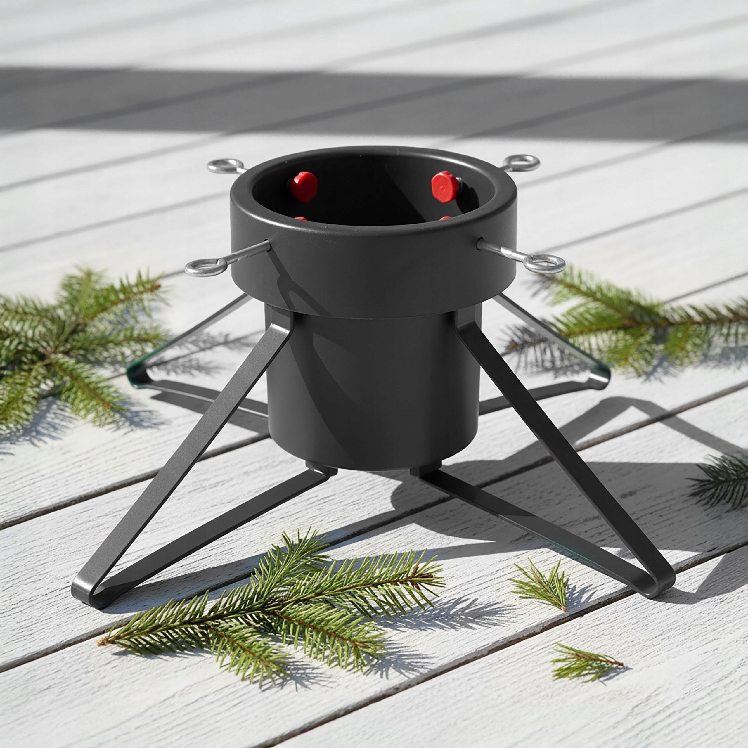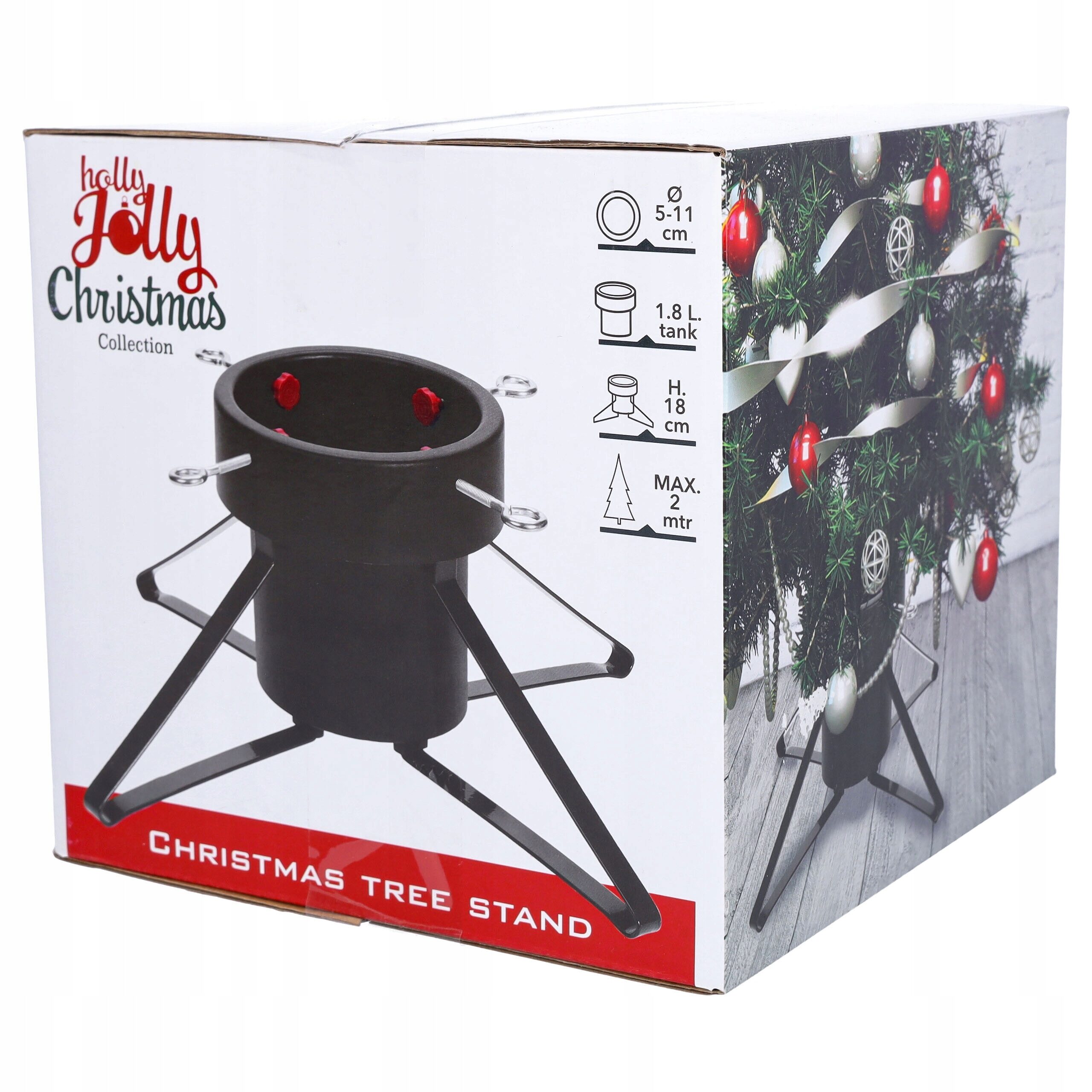 Stabilny i solidny stojak pod choinkę z pojemnikiem na wodę to niezawodna podstawa dla Twojego świątecznego drzewka. Dzięki metalowym nogom i zbiornikowi o pojemności 1,8 litra, choinka pozostaje świeża i bezpieczna przez całe święta.
